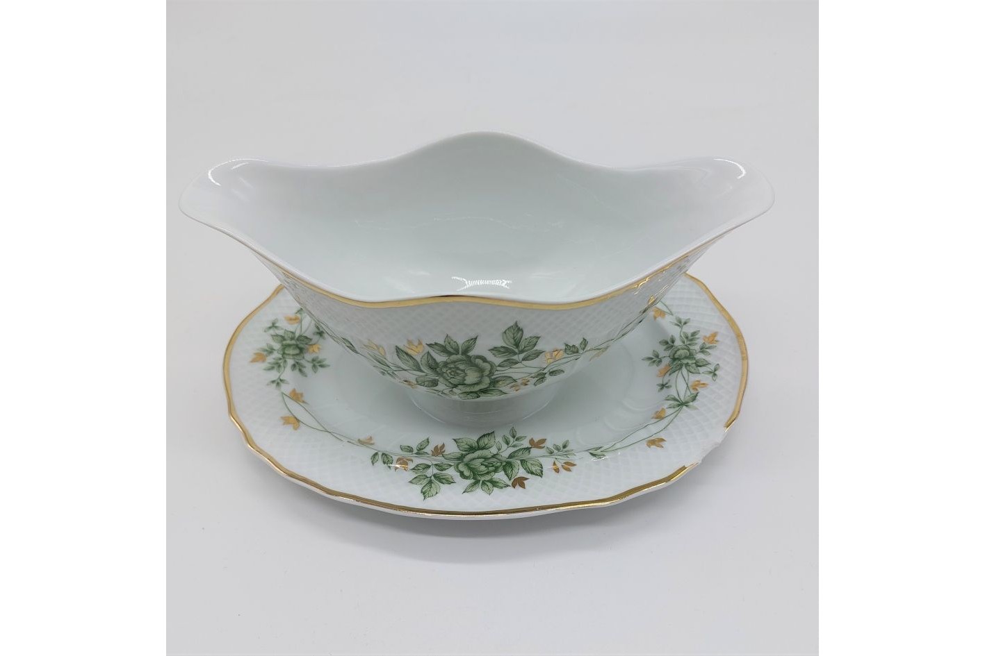 Állapot: A mártásos tál kisebb esztétikai hibával rendelkezik, a többi tétel keveset használt, kifogástalan állapotú.