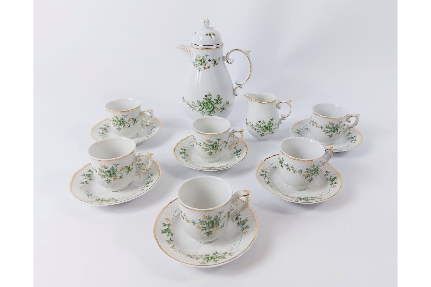 Állapot: A készlet a cukortartót nem tartalmazza, a többi tétel keveset használt, kifogástalan állapotú.
